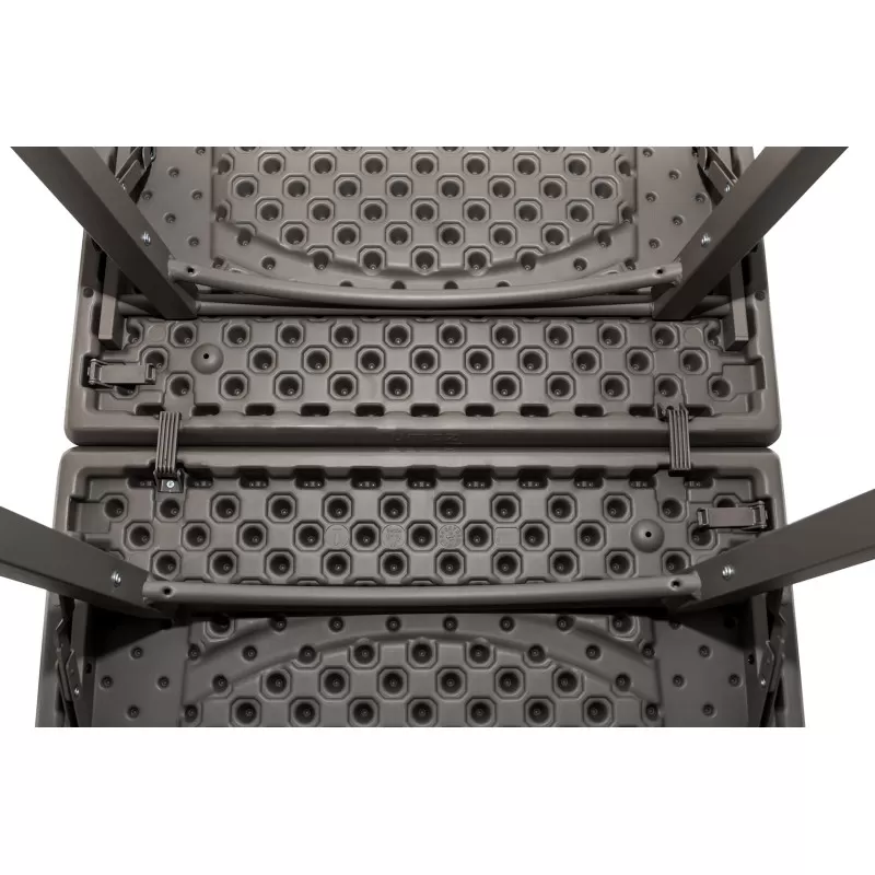 Cette table en polyéthylène est hautement résistante et est particulièrement conçu pour un usage intensif que ce soit en extérieur ou en intérieur. Résistant à une charge de 180 kg, son plateau épais résiste aux impacts, à l’humidité et aux UV. Son armature ergonomique vous permet d’avoir plus d’espace sous la table pour vos jambes notamment pour les personnes assises en bout de table, argument non négligeable pour une table de camping. Peu encombrante, les pieds se replient et le plateau peut alors facilement se glisser derrière une cloison, sous un lit ou sur une paroi de soute dans votre camping-car ou caravane. Existe dans 2 dimensions.